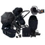 Includes accessory pack with raincover, backpack, footmuff, parasol, screen, cupholder