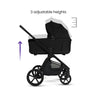 Designed to grow with your child, Cove includes a carrycot approved for occasional overnight sleeping and a reversible, lie-flat seat that ensures comfort from newborn to toddler. The built-in elevation system offers three adjustable height positions, bringing your baby closer for easier access and interaction, with a multi-height UPF50+ sun hood providing extra room for growth. Pack everything you need in Cove’s supersized 10kg storage basket, effortlessly folds with one hand for easy storage and transportation.